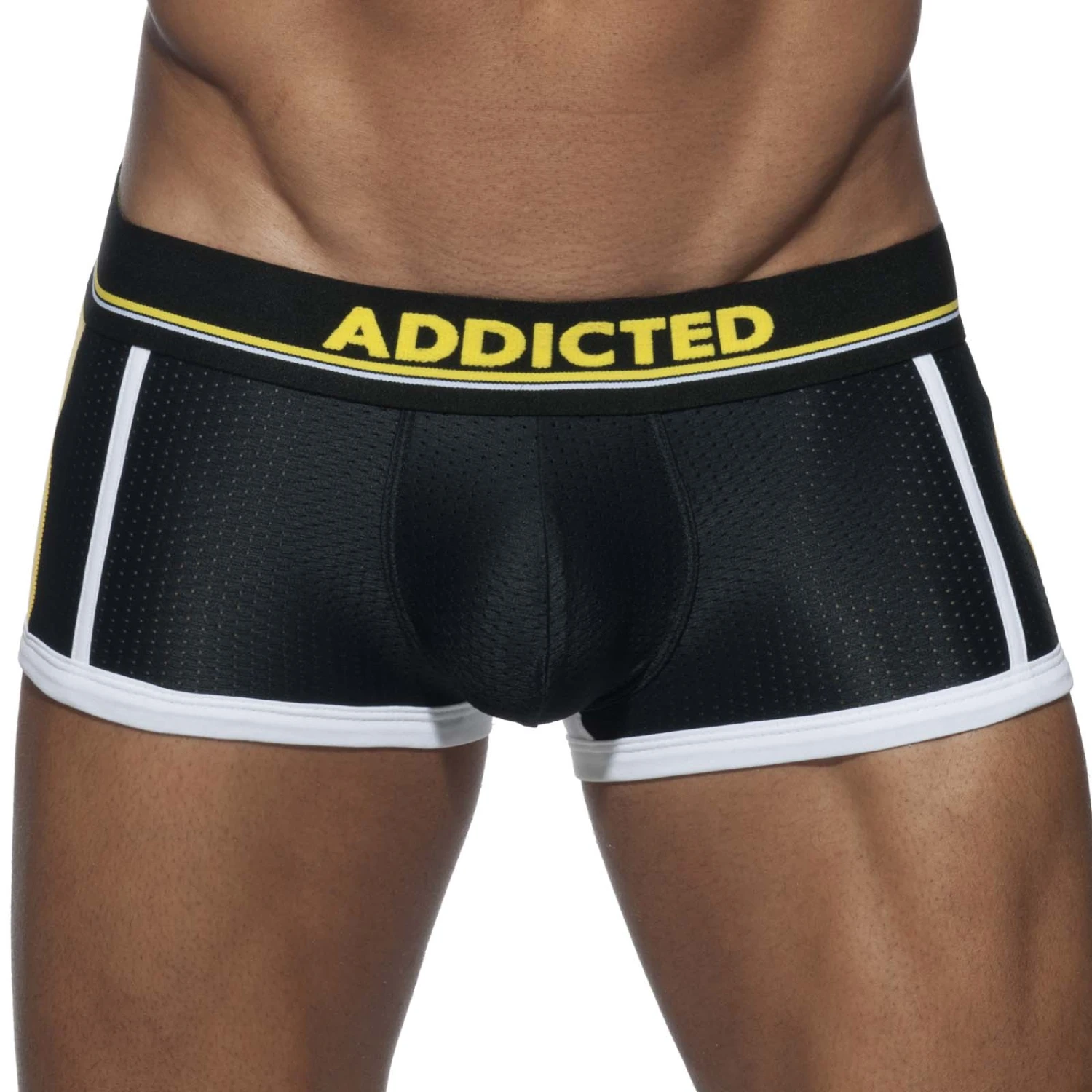 Boxer Addicted Open Sport AD739. Découvrez le confort extrême de ce Boxer en tissus mesh. Doté dune poche qui met en avant vos atouts. Ceinture élastique avec le nom de la marque ADDICTED. 85% Polyamide, 5% Coton, 10% Elasthanne.