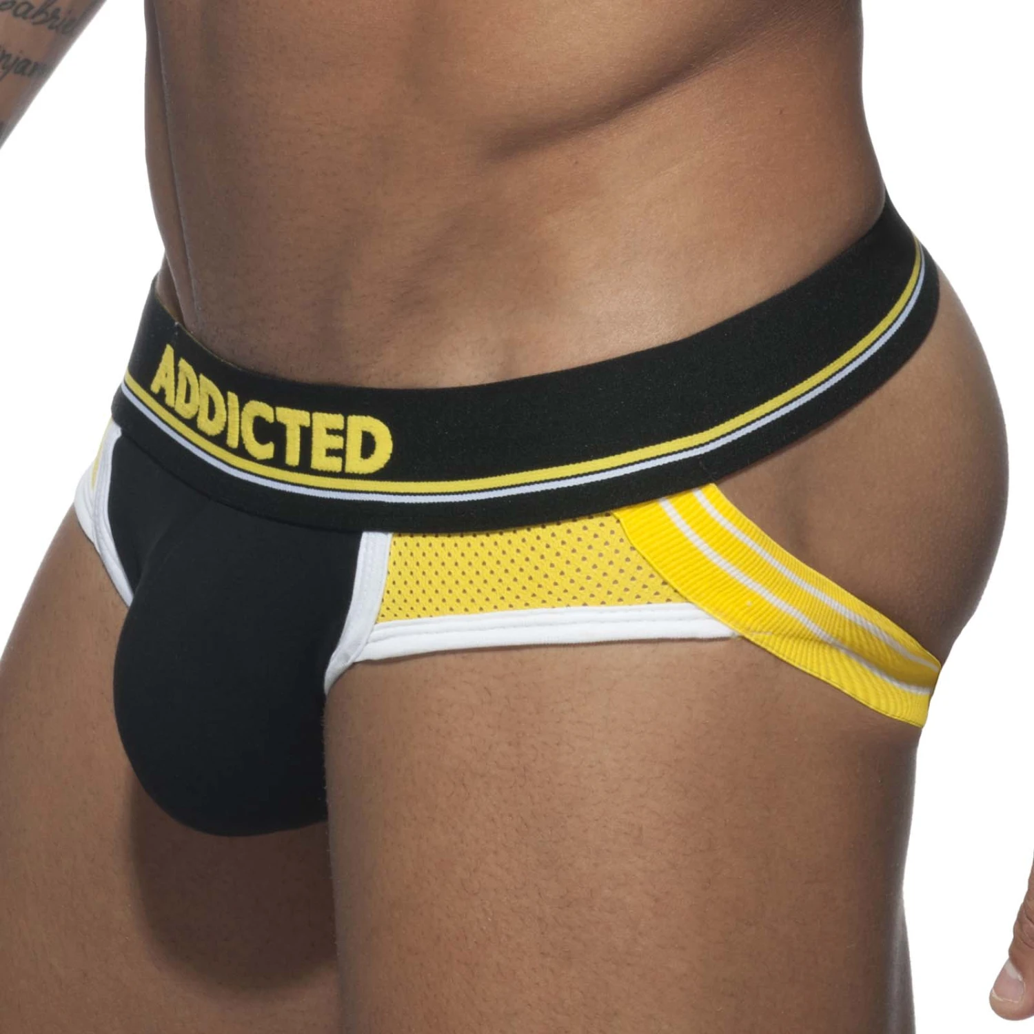 Jock Strap Addicted Push Up Sport AD744. Découvrez le confort extrême de ce Jock strap. Doté d’une poche Push Up qui met en avant vos atouts. Ceinture élastique avec le nom de la marque ADDICTED. 40% Polyamide, 50% Coton, 10% Elasthanne.