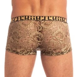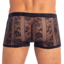 Shorty L Homme Invisible Olivier UW05IVY. Découvrez le charme irrésistible de ce V Boxer. Très belle matière en tulle transparent avec broderie. Ergonomique et confortable ce Shorty vous rendra encore plus sexy. Ce Shorty est doté d un confort exceptionnel et d un style séducteur. Poche avant en V, elle vous procure un effet avantageux soulevant légèrement votre intimité masculine et assurant un excellent maintien grâce à son effet push up. Poche frontale et coutures réduites au minimum. Ceinture élastique. Une somptueuse collection alliant confort et élégance pour être romantique plus que jamais avec sa maille fine et transparente en coloris bleu ciel, sur laquelle sont brodées des feuilles d’oliviers. 45% Polyamide, 45% Polyester, 10% Elasthanne.