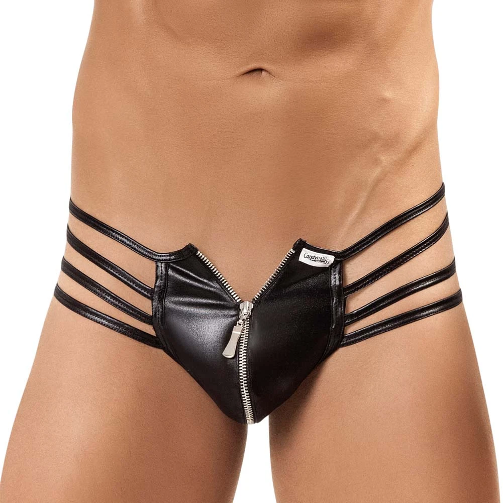 String Candyman en 91% Polyester, 9% Elasthanne. Fermeture éclaire sur la poche du devant qui s’ouvre jusqu’en bas et s’arrête au trois quart comme le montre la photo. Ce String Candyman est très sexy et provocant en même temps.