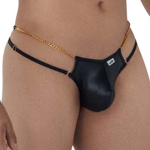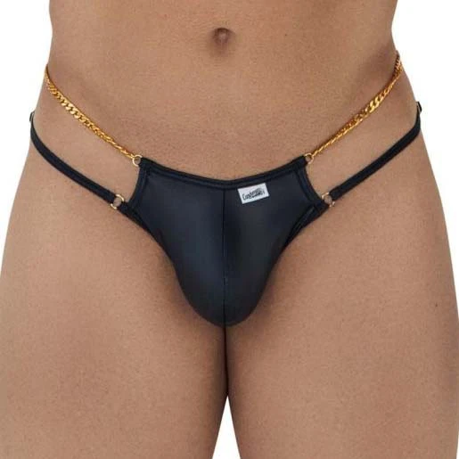 String Candyman Chain 99605. String avec une ceinture chaine dorée. Très sexy. Tissu en microfibre doux et soyeux. A porter sans modération. Ceinture réglable. 88% Polyamide, 12% Elasthanne.